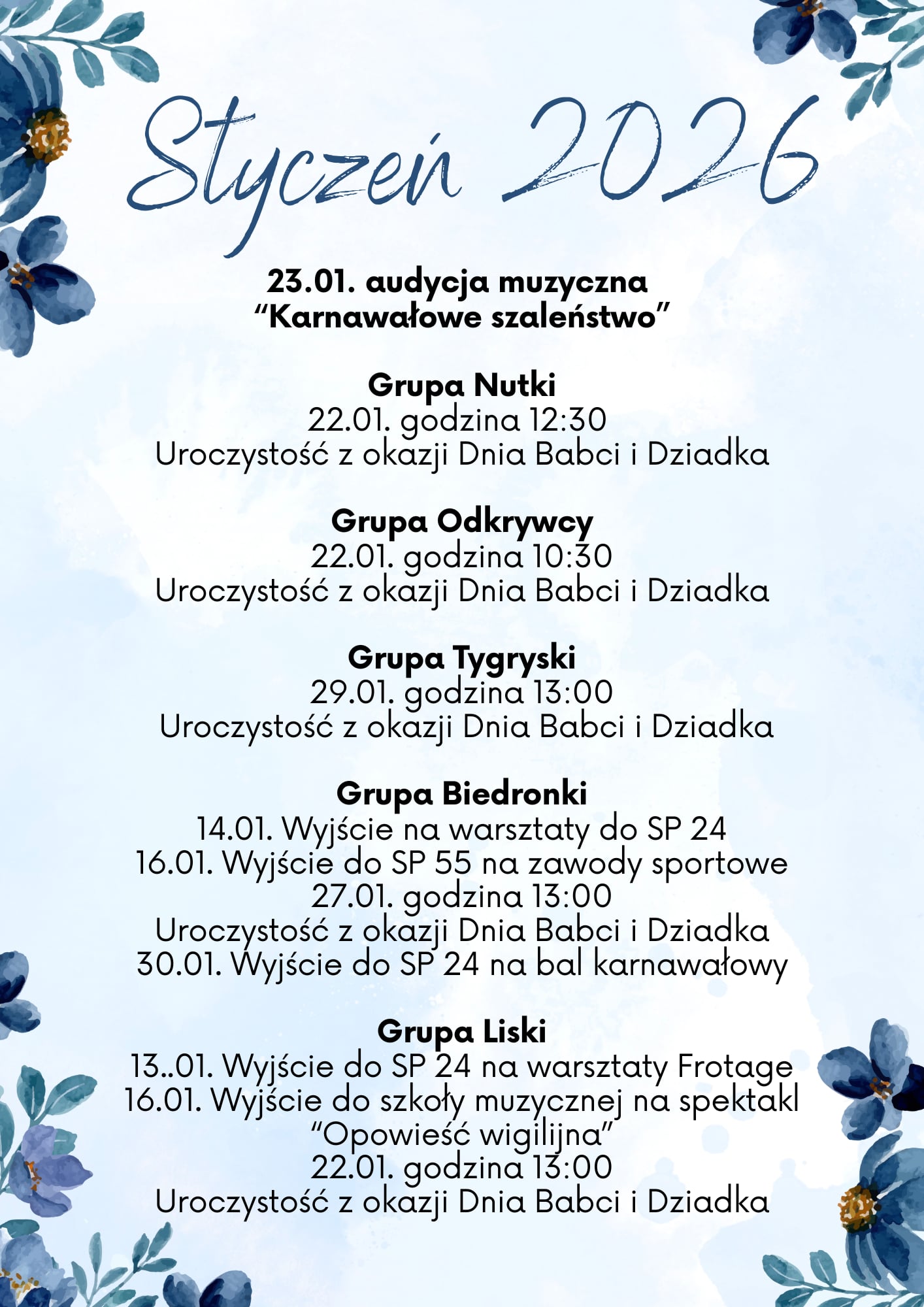 Zamierzenia Styczeń 2026