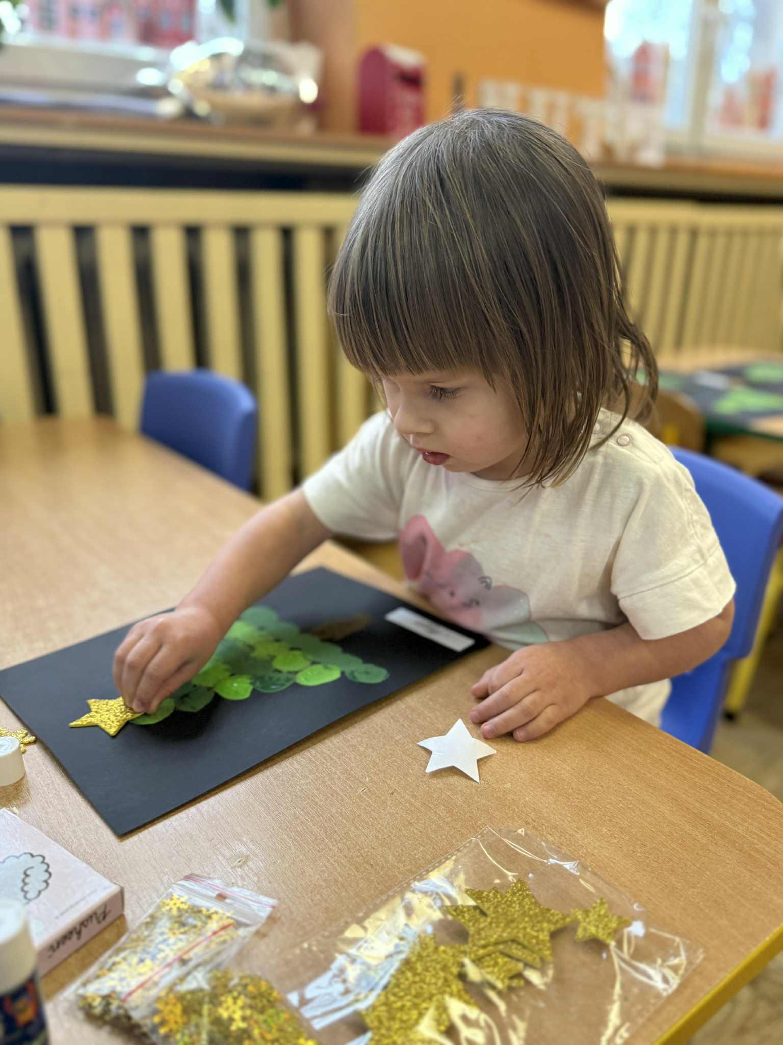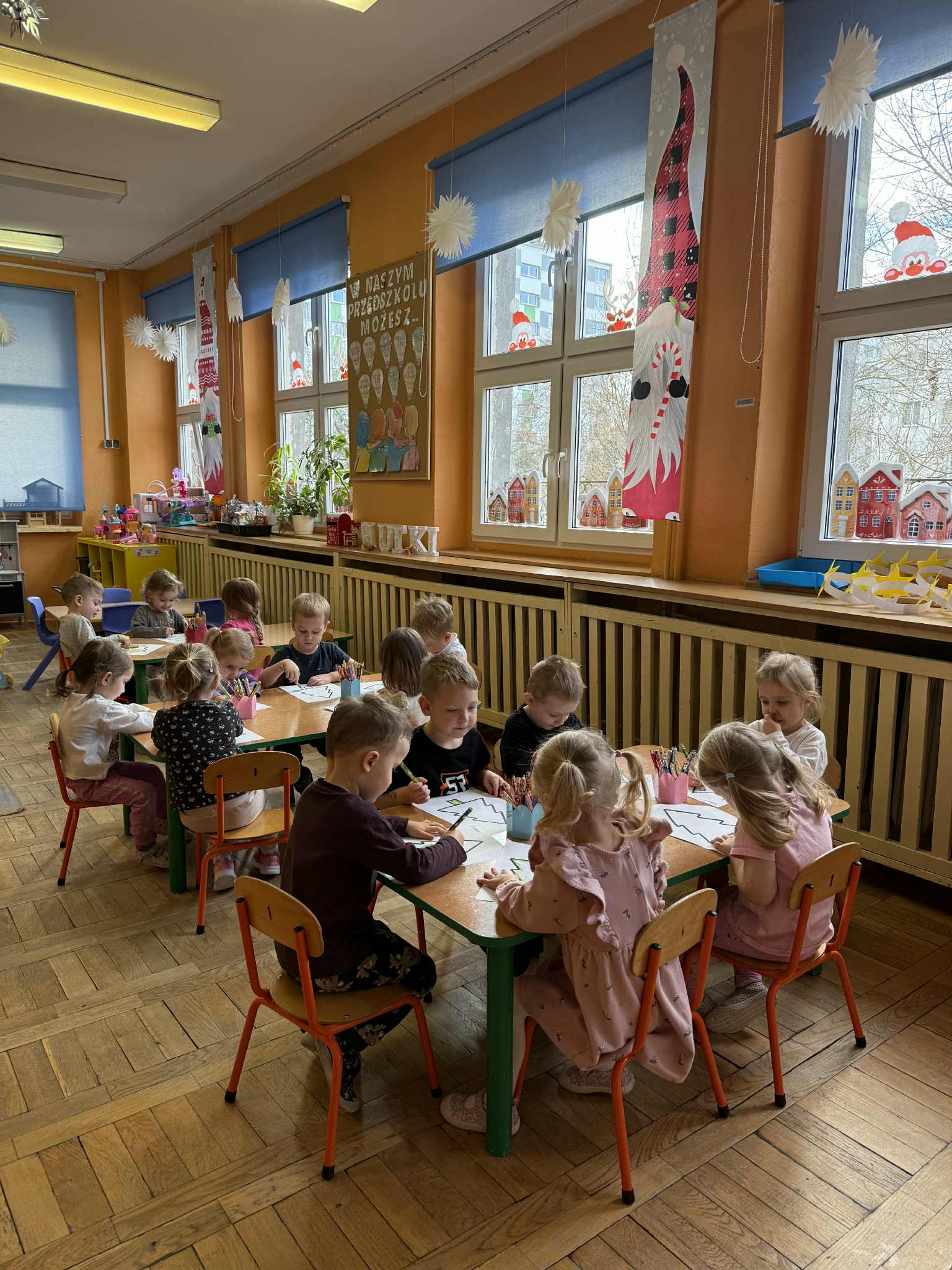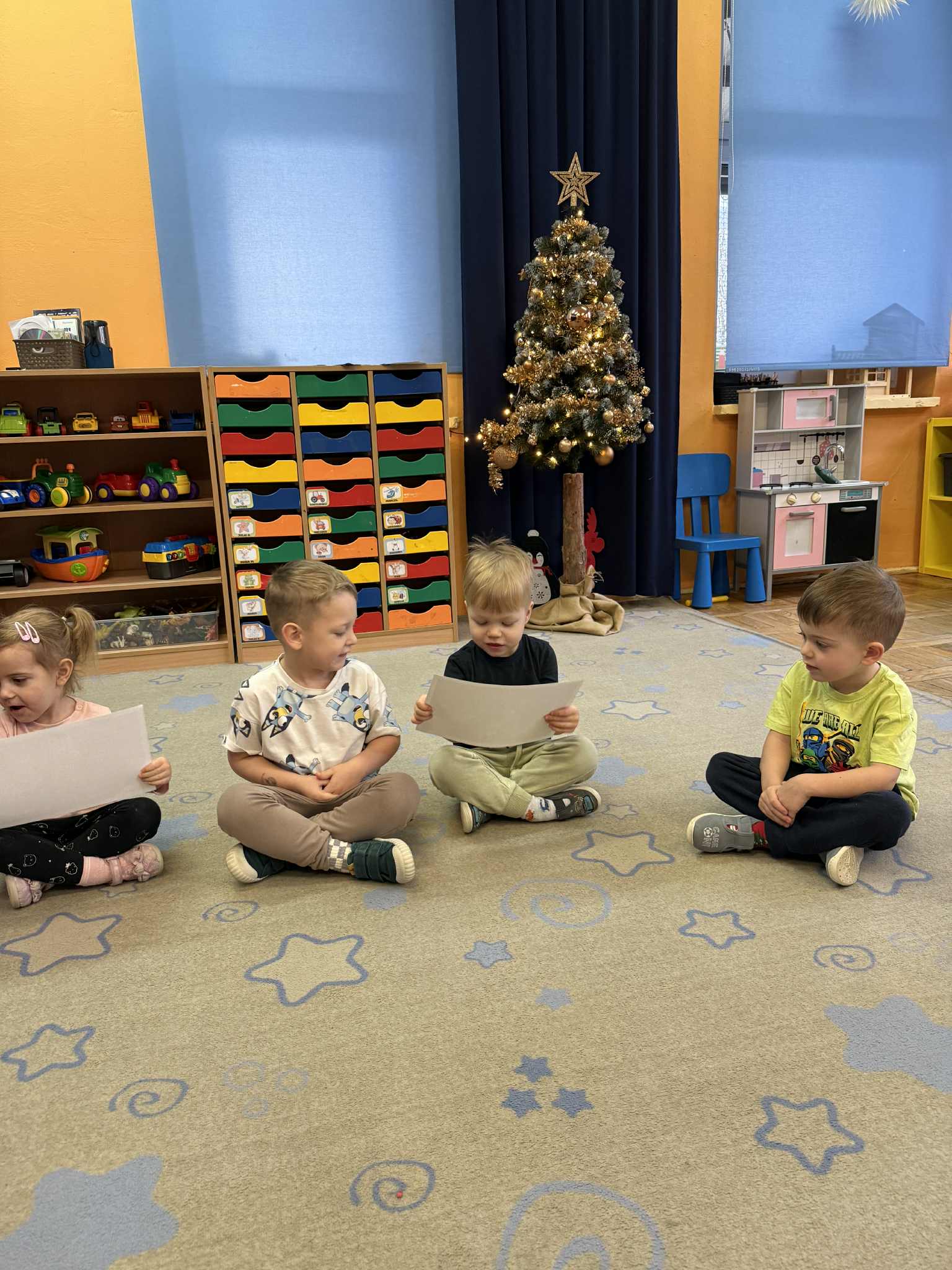 Ostatnie dwa tygodnie grudnia upłynęły pod hasłem intensywnych przygotowań do świąt. W sali pojawiły się świąteczne dekoracje, choinka oraz prace plastyczne wykonane przez dzieci. Rozmawialiśmy o wartościach rodzinnych, wspólnym spędzaniu czasu oraz okazywaniu sobie życzliwości i wdzięczności. „Nutki” uczestniczyły w zabawach tematycznych, inscenizacjach oraz słuchały opowiadań o tematyce świątecznej. Panowała wyjątkowo ciepła, serdeczna i wzruszająca atmosfera. 18 grudnia odbył się występ dzieci pod tytułem „Opowieści gwiazdki”, po którym wspólnie zasiedliśmy do przygotowanej Wigilii.